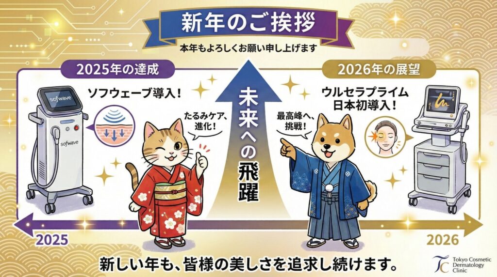 新年明けましておめでとうございます。医師の尾松です。2026年も東京美容皮膚科クリニックをよろしくお願いいたします。 今年はウルセラプライムとともに、新年を迎えます。旧ウルセラと比較し、新しいウルセラプライムは・画像の解析度がアップしました ... -